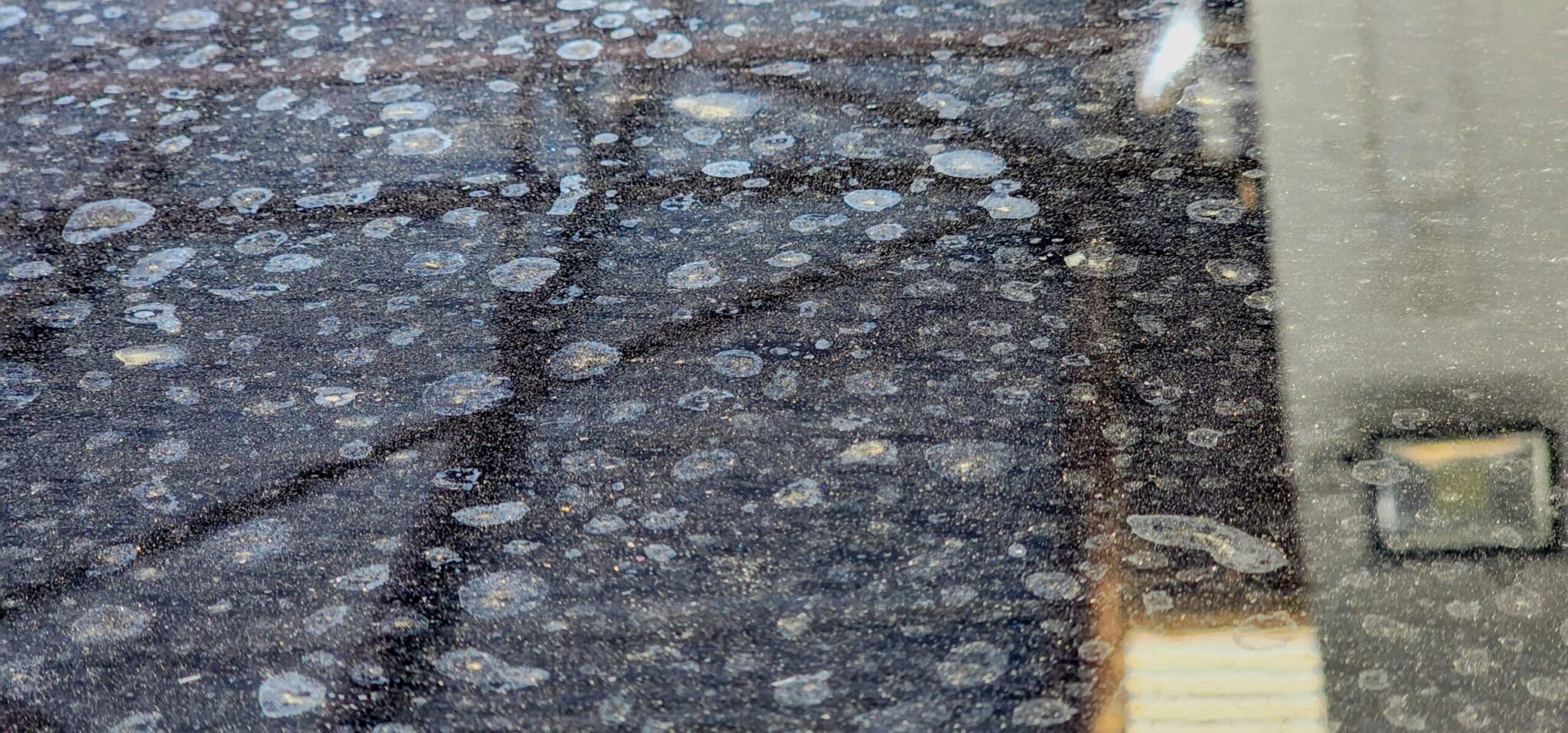 If water is left untreated over time, then minerals will begin to fuse to the paintwork, glass or trim. These minerals can begin to etch their way into the surface, creating water-etching. This can happen after a long period of time, or quite quickly. The speed of this reaction depends on many environmental factors such as the mineral content in the water, temperature, and UV rays.